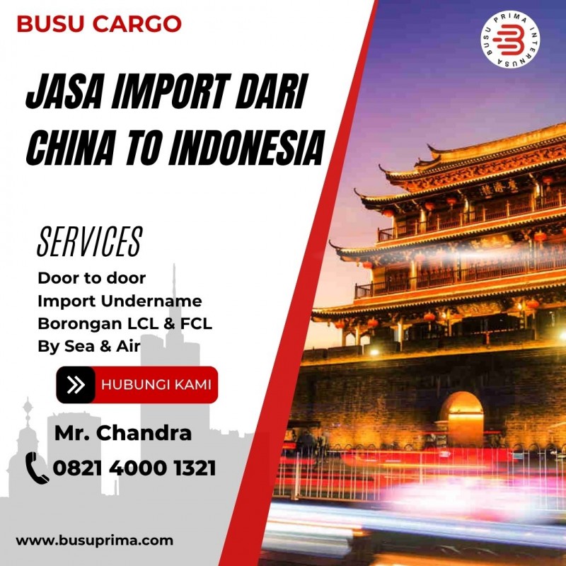 Kami dari BUSU CARGO, menawarkan jasa import door to door dari berbagai negara seperti China, Korea, Jepang, USA, dan Eropa ke seluruh wilayah Indonesia.