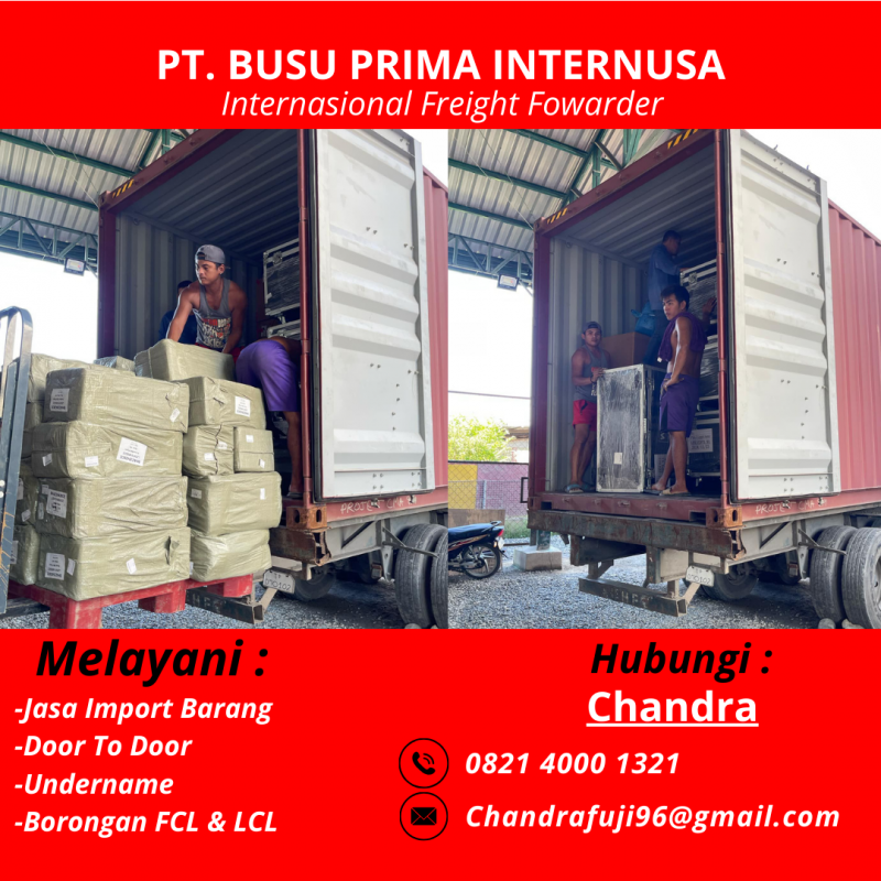 Kami dari PT. BUSU PRIMA INTERNUSA, menawarkan jasa import door to door dari berbagai negara seperti China, Korea, Jepang, USA, dan Eropa ke seluruh wilayah Indonesia.